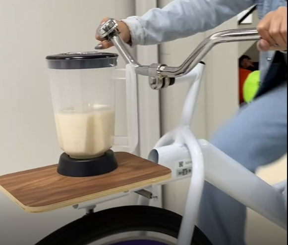 Rio do Sul, 12.01.2025 - A "Bike de Suco" pode ser usada dentro da programação de eventos - Sipat, feiras, campanhas, etc - como uma nova forma de promover saúde e engajamento de maneira divertida. Isso porque um liquidificador fica acoplado à parte frontal da bicicleta e, quando o trabalhador pedala, aciona o mecanismo que prepara o suco de frutas. Outra opção é adaptar uma roleta para sorteio de brindes ou realização de desafios.