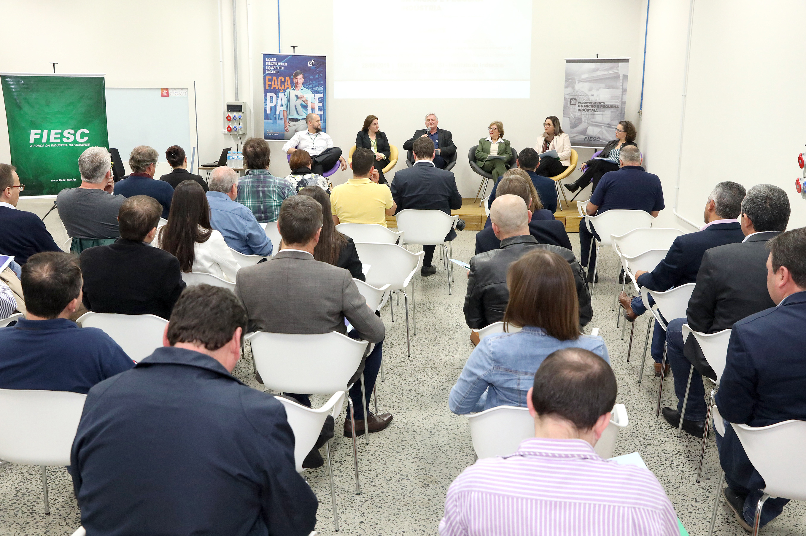 Florianópolis, 29.8.2018 – A Câmara de Desenvolvimento da Micro e Pequena Indústria da FIESC promoveu reunião com empresários de Joinville nesta terça-feira, dia 28. O encontro, realizado no Instituto da Indústria, tratou de temas como o E-Social, indústria 4.0 e isenção de ICMS para geração de energia. O presidente da Câmara, Célio Bayer, lembrou que 97,8% dos estabelecimentos no estado são micro e pequenas empresas, responsáveis por 51,6 %empregos. “No entanto, apenas 2,6 % das exportações têm origem neste setor, o que significa que tem grande potencial para crescer. Ampliar a internacionalização é uma das metas da atual gestão”, ressaltou.