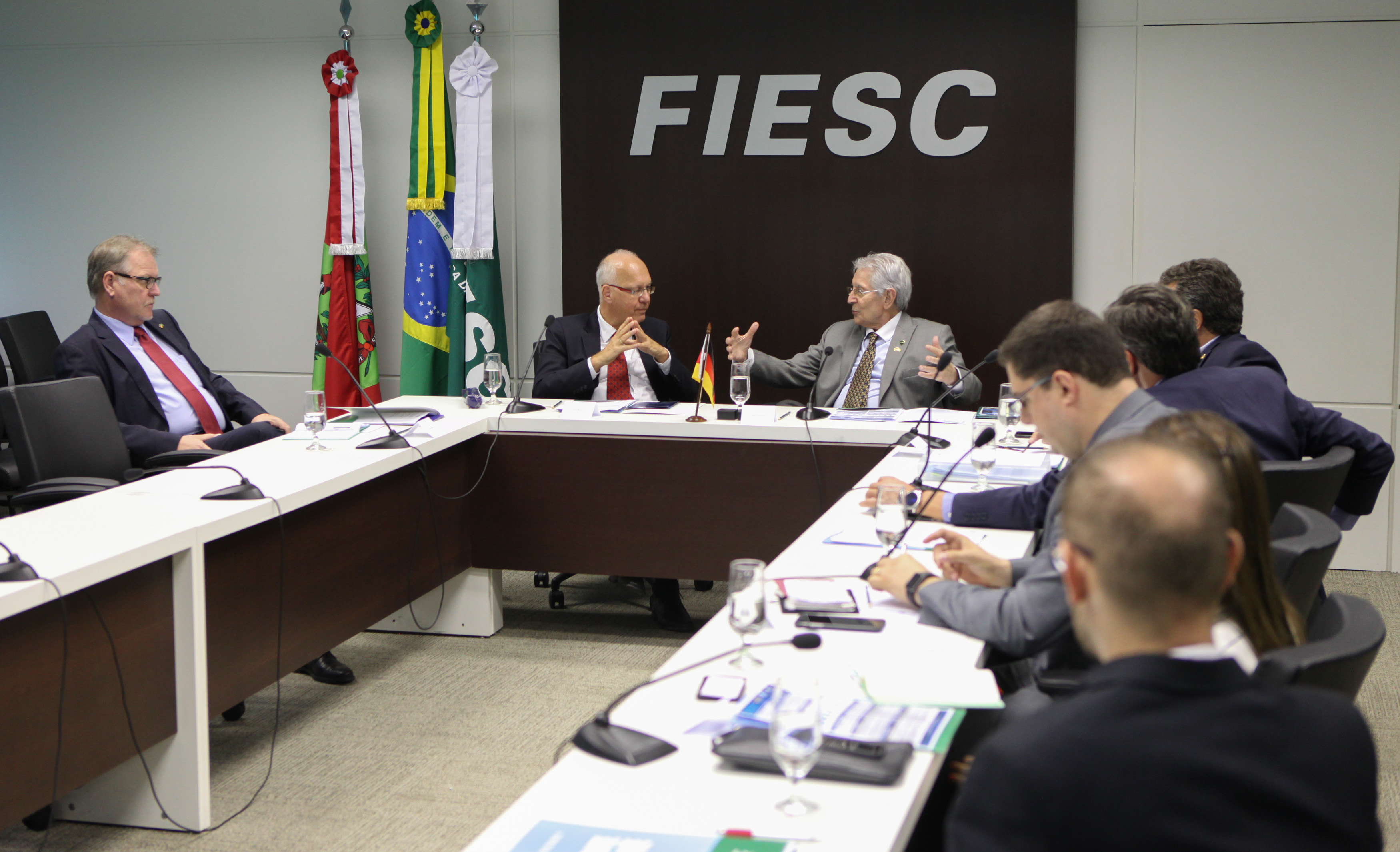 Florianópolis, 14.5.2018 – O embaixador da Alemanha no Brasil, George Witschel, visitou a Federação das Indústrias de Santa Catarina (FIESC) na tarde desta segunda-feira, 14, sendo recebido pelo presidente, Glauco José Côrte, e diretores das entidades que integram a Federação. Na reunião, foram debatidos temas como as oportunidades de cooperação entre Santa Catarina e a Alemanha, em especial envolvendo o setor industrial, e o 36º Encontro Econômico Brasil-Alemanha (EEBA), que será realizado na cidade alemã de Colônia, nos próximos dias 25 e 26 de junho.