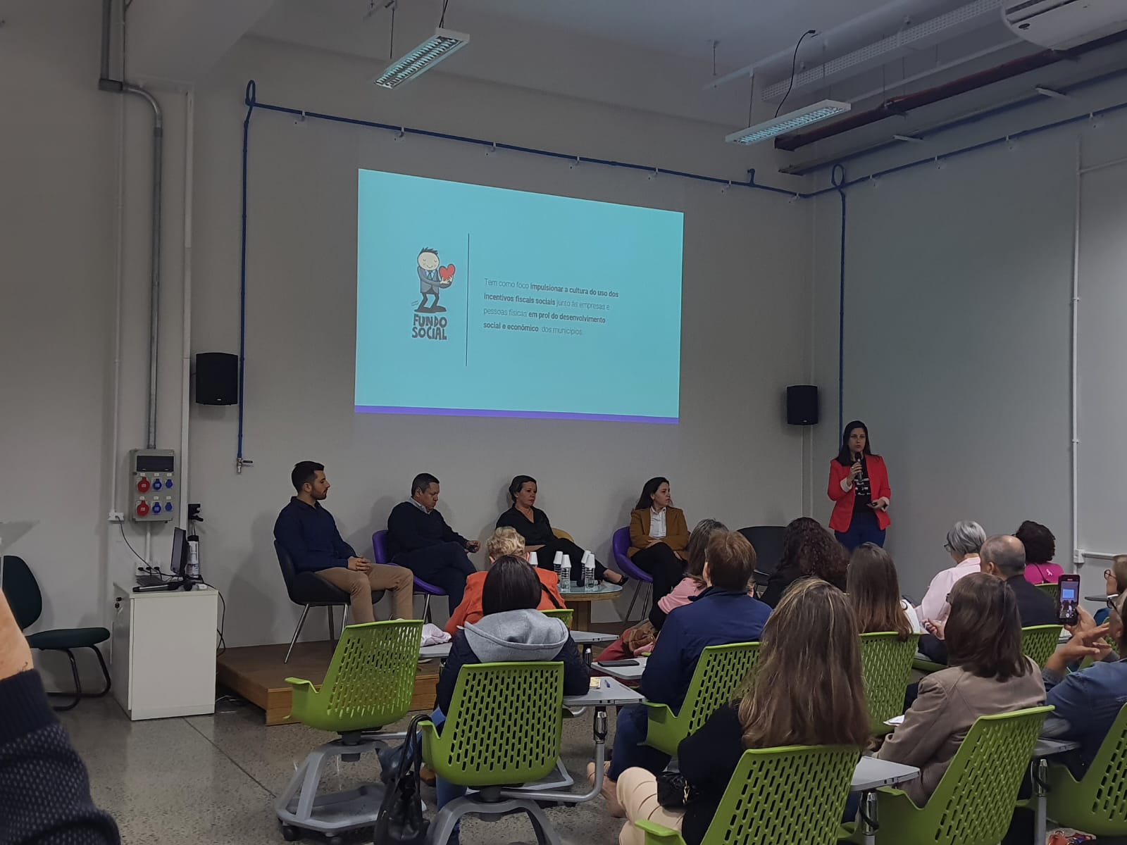 O primeiro painel abordou o tema “incentivos fiscais para projetos sociais na agenda ESG” e teve a mediação de Andressa Mongruel, líder do programa Fundo Social da FIESC. Ela falou sobre como as empresas e pessoas podem destinar recursos com o uso dos incentivos fiscais. “A FIESC atua junto às empresas para incentivar a aproximação das entidades, gerando ganhos para a sociedade.”