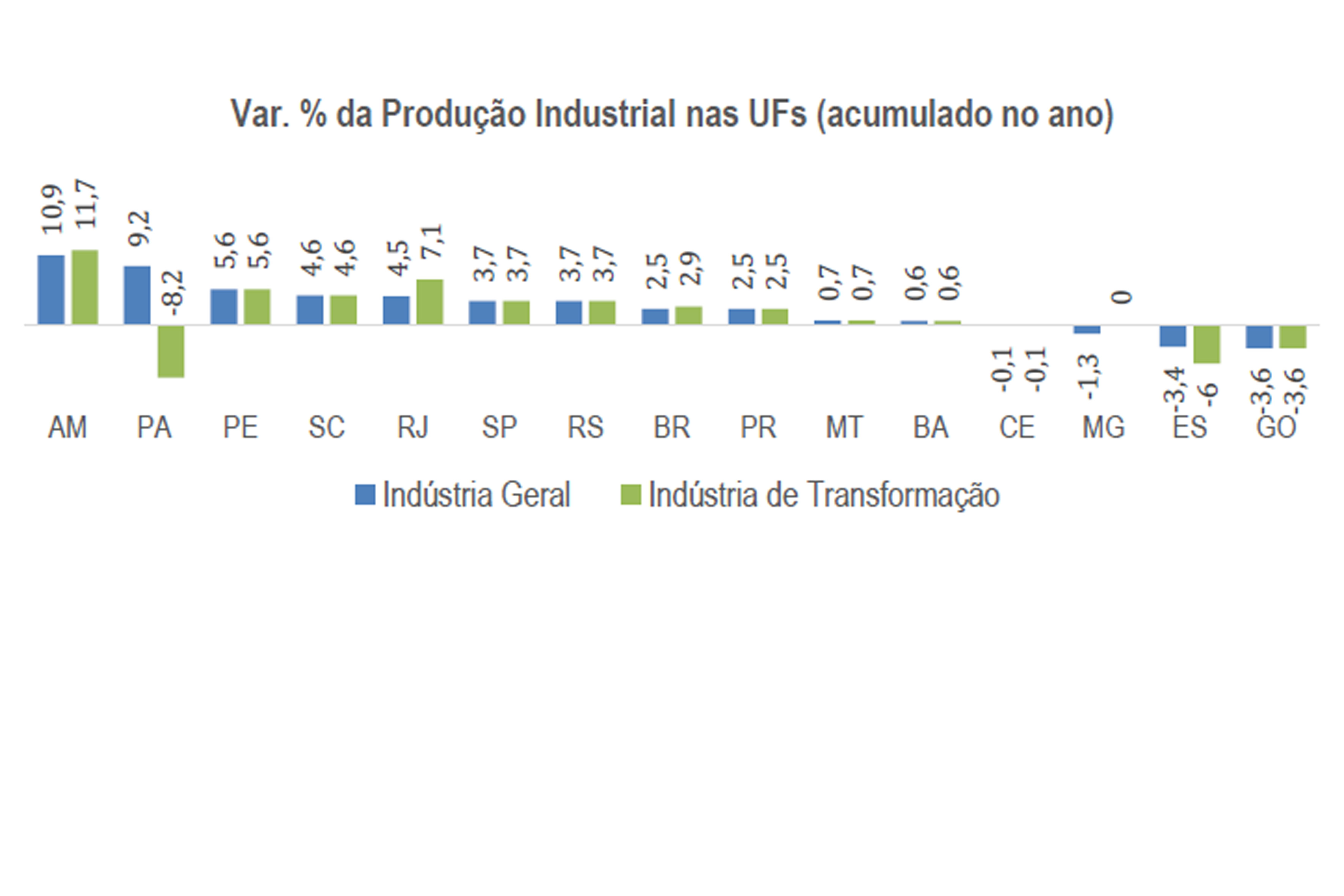 Florianópolis, 9.10.2018 – A produção industrial catarinense acumula alta de 4,6% até agosto em relação ao mesmo período no ano passado. Quando apenas a indústria de transformação é analisada, o desempenho acumulado coloca Santa Catarina no quarto lugar no ranking, atrás do Amazonas (11,7%), Rio de Janeiro (7,1%) e Pernambuco (5,6%). O resultado é puxado pelas atividades de metalurgia (26,8%) e produtos de metal (16,2%). Em agosto, o indicador avançou 5% em relação ao mesmo mês em 2017, mostram dados do IBGE, divulgados pela FIESC. Clique aqui e veja os dados completos.