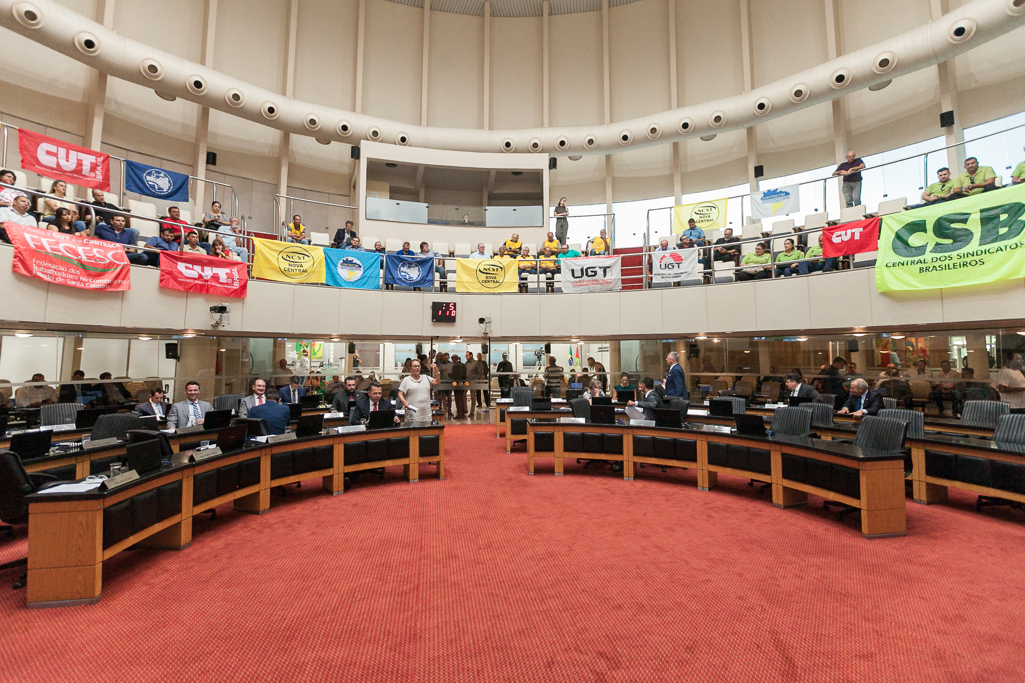 Representantes de várias centrais sindicais acompanharam a votação das galerias do Plenário Deputado Osni Régis.