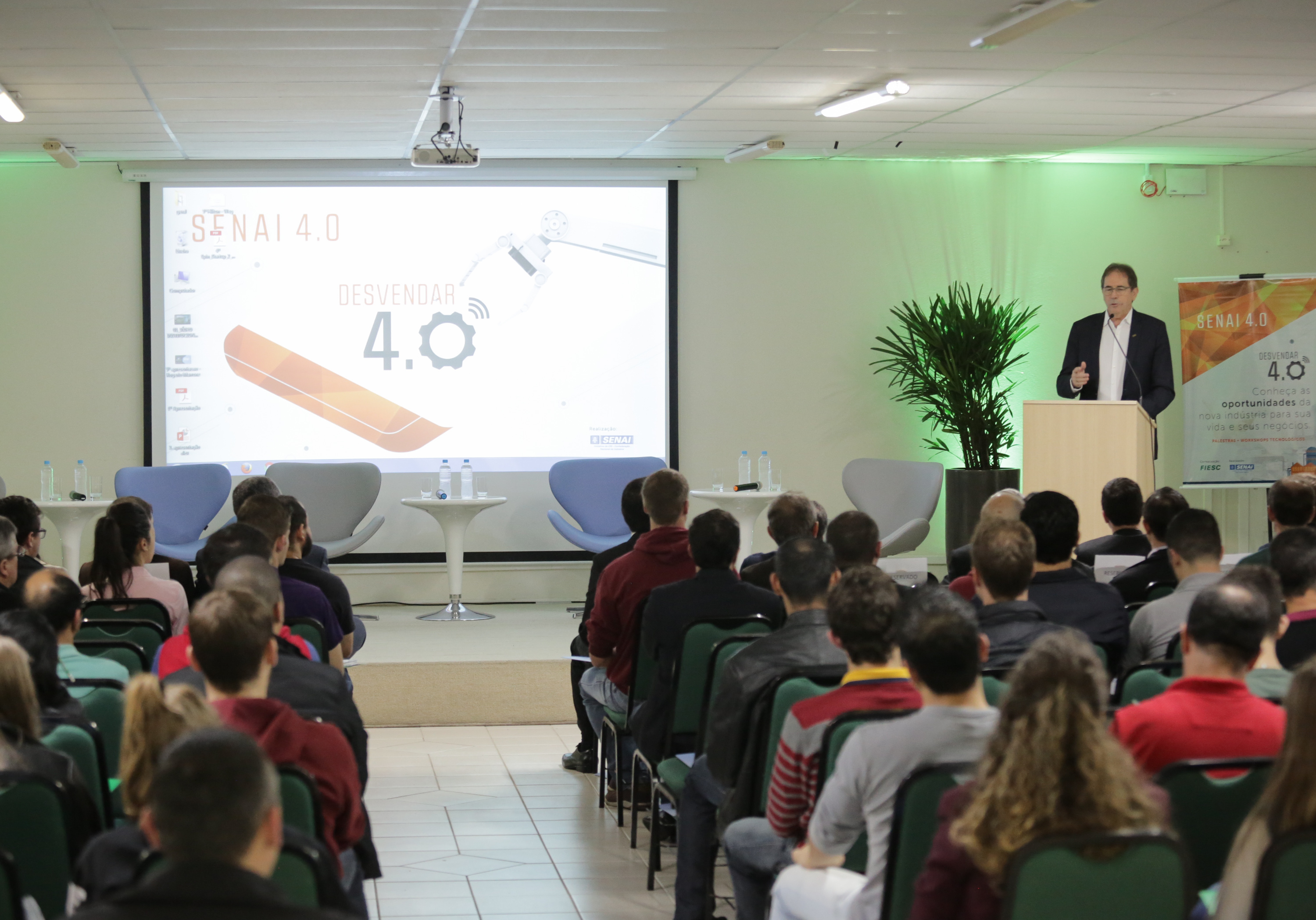 Florianópolis, 13.9.2018 – A integração de tecnologias para a melhoria dos processos de fabricação que forma o conceito de indústria 4.0 traz desafios e oportunidades ao setor produtivo brasileiro. A afirmação foi feita pelo presidente da Federação das Indústrias do Estado de Santa Catarina (FIESC), Mario Cezar de Aguiar, no evento Desvendar 4.0, em Jaraguá do Sul. O encontro, que é uma iniciativa da Confederação Nacional da Indústria, por meio do SENAI Nacional, foi realizado nesta quarta-feira (12) em todo Brasil com o objetivo de sensibilizar as empresas sobre o assunto.