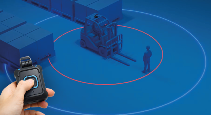 Estes dispositivos se comunicam por meio de tecnologia de banda ultralarga (UWB) para monitorar a distância e o tempo de interação em tempo real. Quando uma pessoa se aproxima de uma máquina, são gerados sinais de alerta: