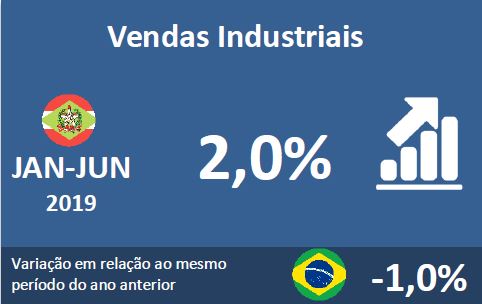 As vendas industriais de junho reduziram -15,7% na comparação com o mesmo período do ano passado. O resultado negativo tem relação com a greve dos caminhoneiros. As vendas de maio de 2018 ficaram represadas e foram efetivadas em junho, o que resultou numa alta de 32,2% no faturamento, percentual bem acima da média para o mês.